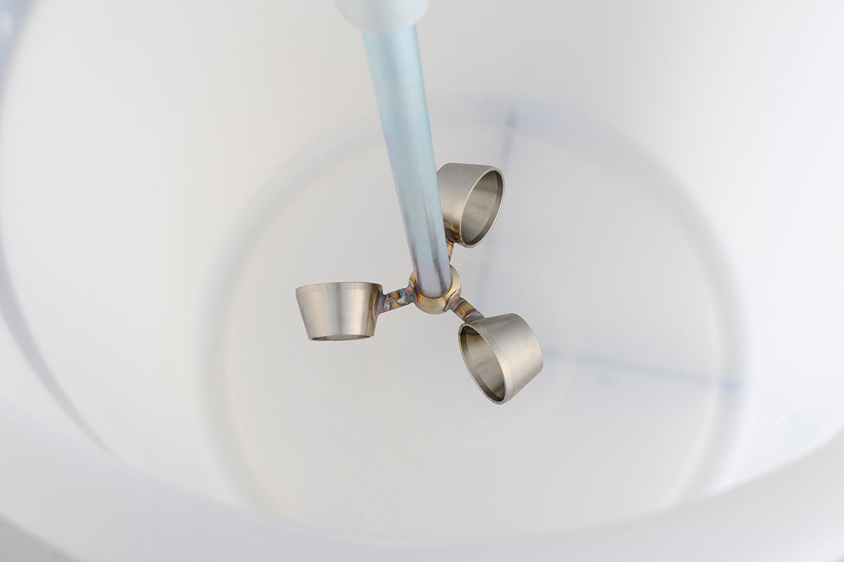 The add-on mixer with tilt mechanism DESOI Power-Mix-ABR-1.1 has been optimised for the perfect mixing of mineral materials with grain sizes 0 - 4 mm. The special design of each single cup ensures a gentle and homogeneous mixing of the material without air intake all over the mixing container. Using the mixer holder, the mixing device works automatically while the injection work is carried out (1-person-operation). The tilt mechanism allows an ergonomic decanting of the fresh material from the mixing container into the material container of the screw pump SP20.